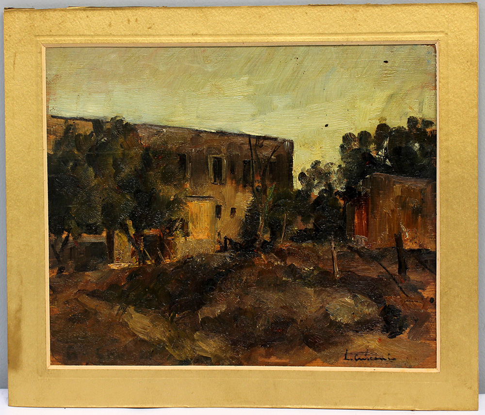Luigi Crisconio (Napoli 1893 - Portici 1946)"Paesaggio con casolari" olio su...