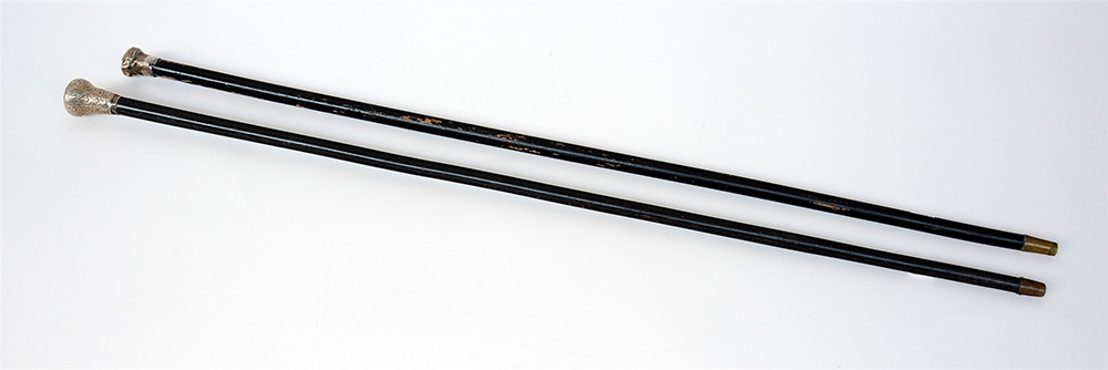 Gruppo di due bastoni con pomolo in argento e canne ebanizzate (difetti)