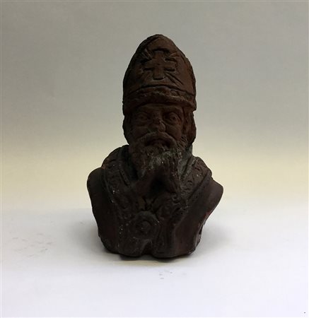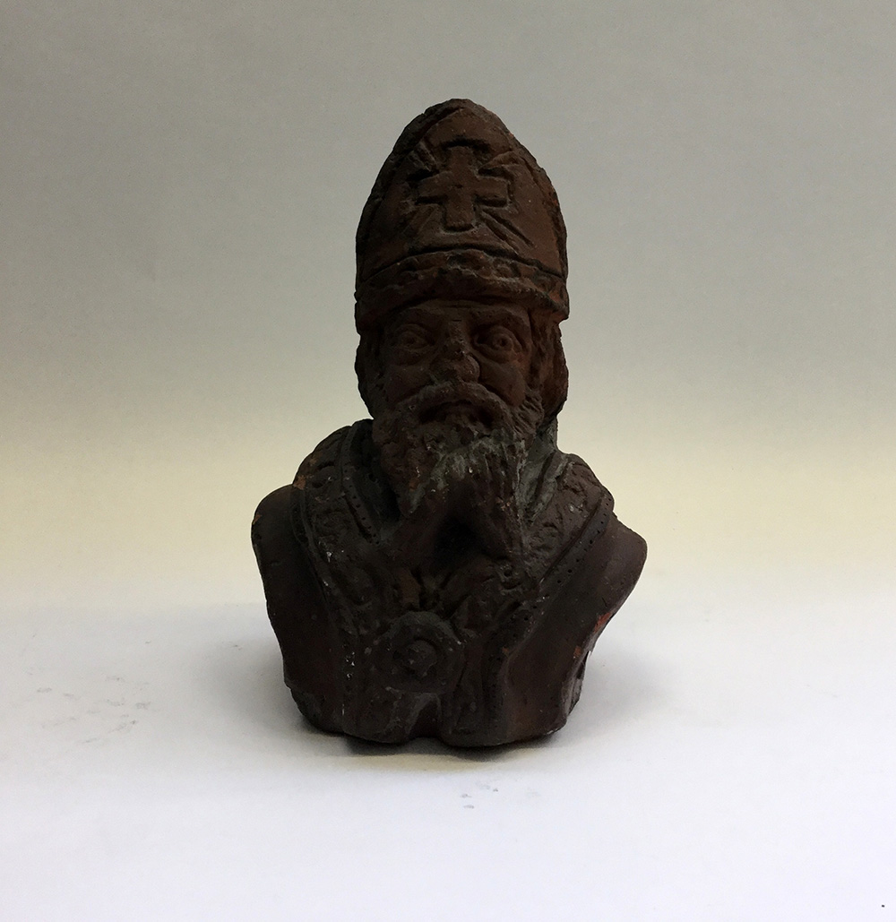 Antica scultura in cotto raffigurante un vescovo (h. cm 32)