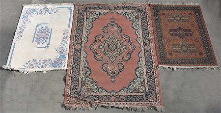 Lotto composto da tre tappeti meccanici a decoro orientale (max cm 219x145) (difetti).