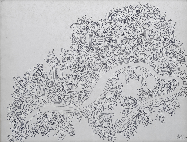 Corrado Cagli (Ancona, 1910 - Roma, 1976) Snake river, 1962 Inchiostro su carta, cm. 52x68 Firma e data in basso a sinistra. € 1.500/2.500