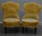 Coppia di poltroncine da camera con piedi anteriori torniti rivestite in velluto ocra, fine sec XIX (difetti)