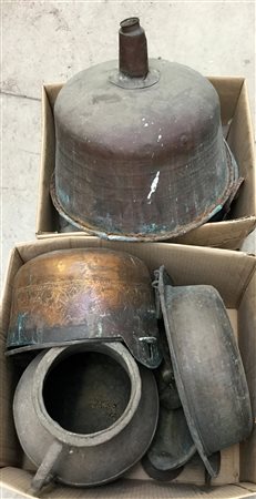 Due scatoloni contenenti vari oggetti in rame (difetti)