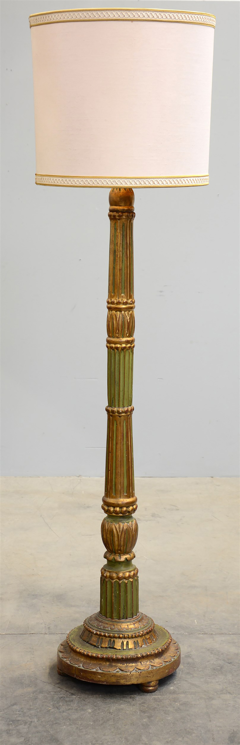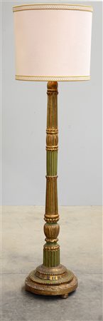 Lampada da terra in legno laccato dorato e scanalato (h cm 160)