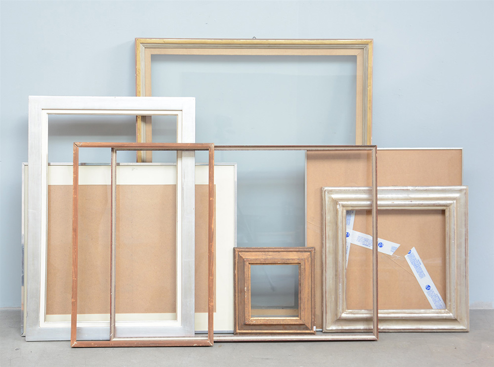 Lotto composto da otto cornici di materiali e misure diverse (difetti)