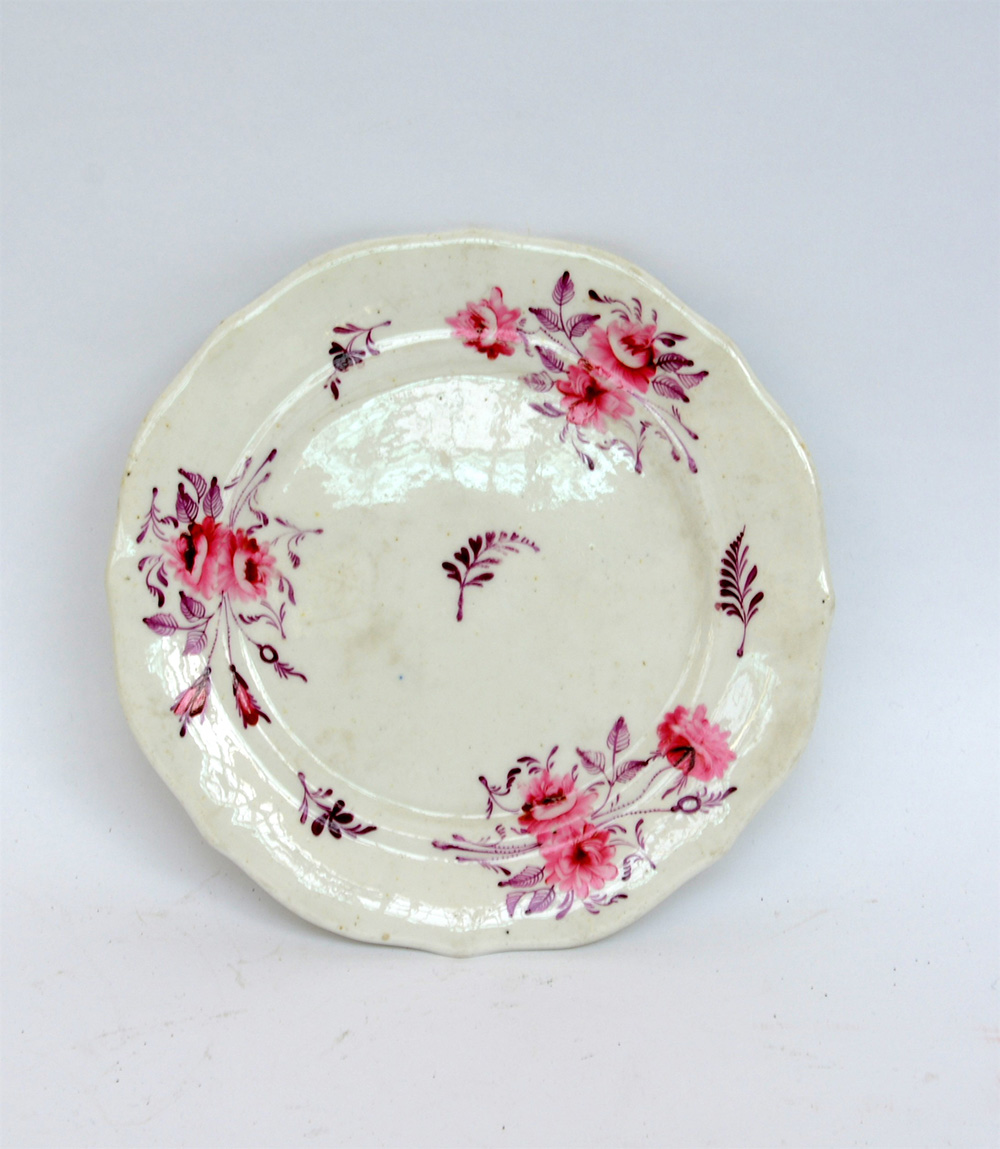 Antico piattino in porcellana con decoro floreale nei toni del porpora (d cm 19)