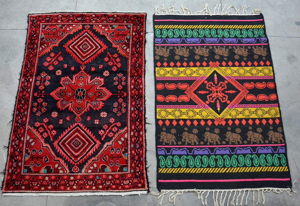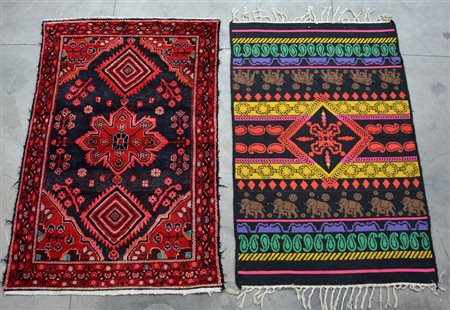 Lotto di due tappeti, di cui il più grande un tappeto Mossul Persia.(max cm 205x130) (difetti)