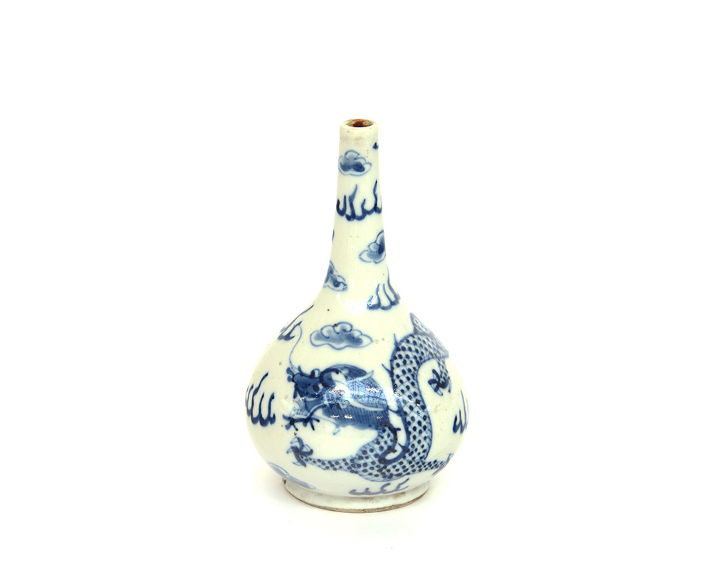 Vaso a bottiglia in porcellana bianca e blu con drago Cina, sec. XIX (h.16,5...