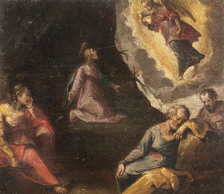 Ignoto del secolo XVIII ''Cristo nell'orto'' olio su tela (cm 28x31) (difetti...