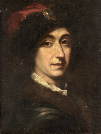 Ignoto del secolo XVIII ''Ritratto di uomo con cappello piumato'' olio su tela (cm 34x26)