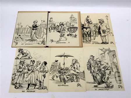 Cartella editoriale contenente stampe umoristiche, 1930 circa. (cm...