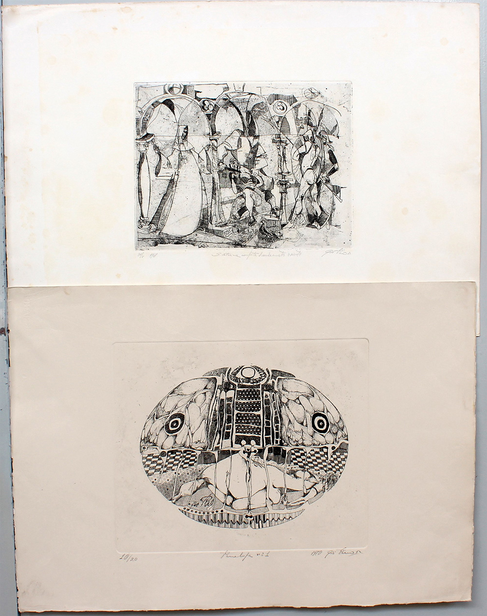 lotto composto da quattro acqueforti dell'artista di soggetti e misure diverse (difetti)