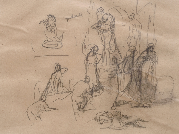 Spartaco Carlini (Pisa, 1883 - 1949) Volto ; Composizione con figure Matita...