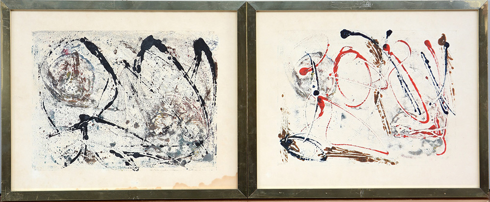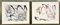 Firma indecifrata, coppia di due tecniche miste su carta (cm 40x49) firmate e...