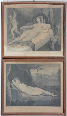 Coppia di litografie inglesi del secolo XIX raffiguranti Diana e Venere (cm 50x60) in cornici dell’epoca (difetti)