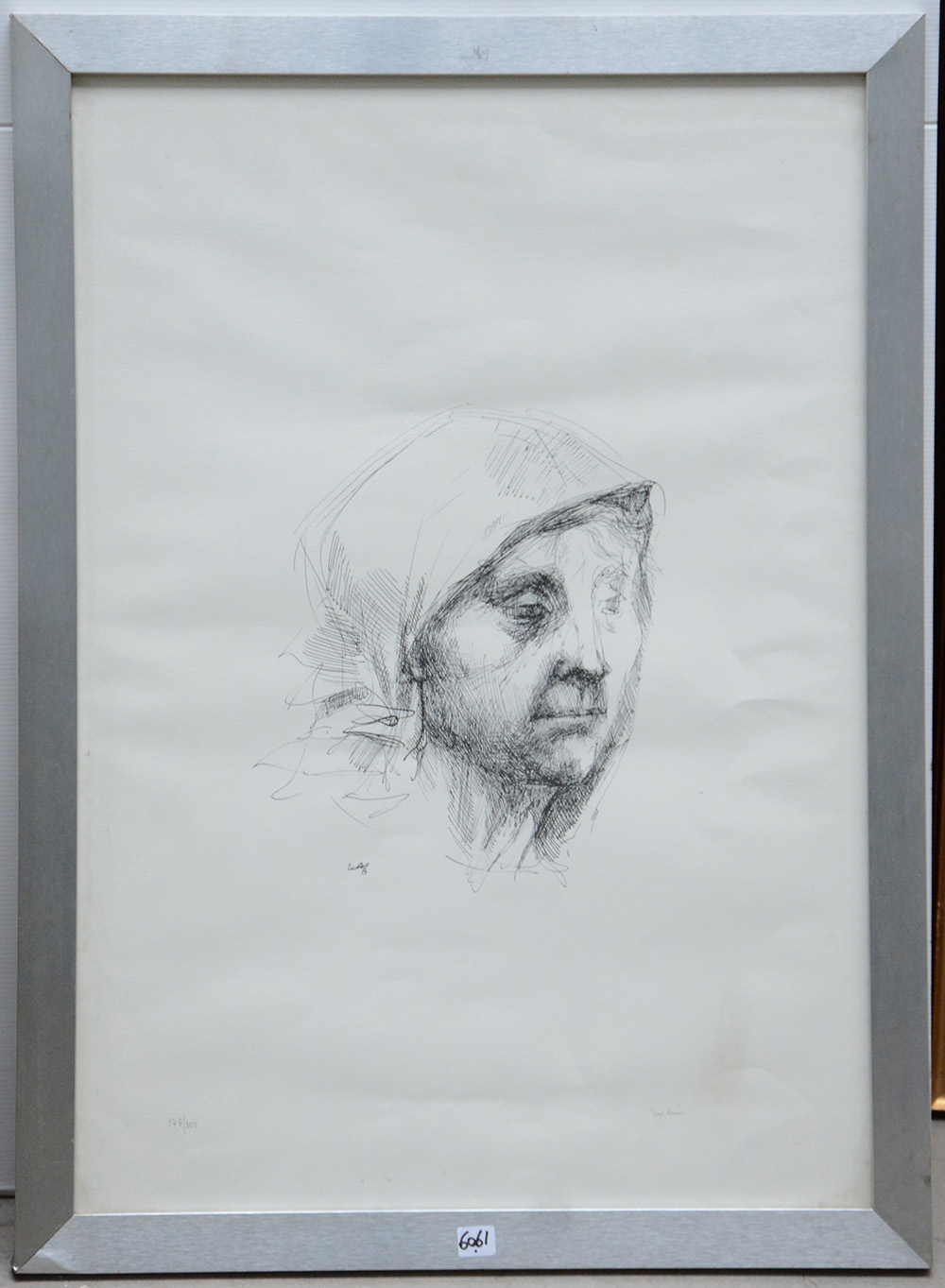 Ignoto "Volto" litografia (foglio cm 70x50) numerata 175/350 e firmata in basso a matita, in cornice (lievi difetti)