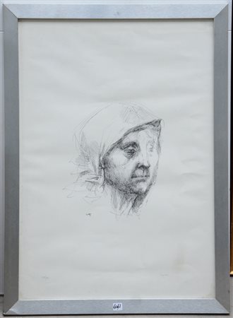 Ignoto "Volto" litografia (foglio cm 70x50) numerata 175/350 e firmata in...