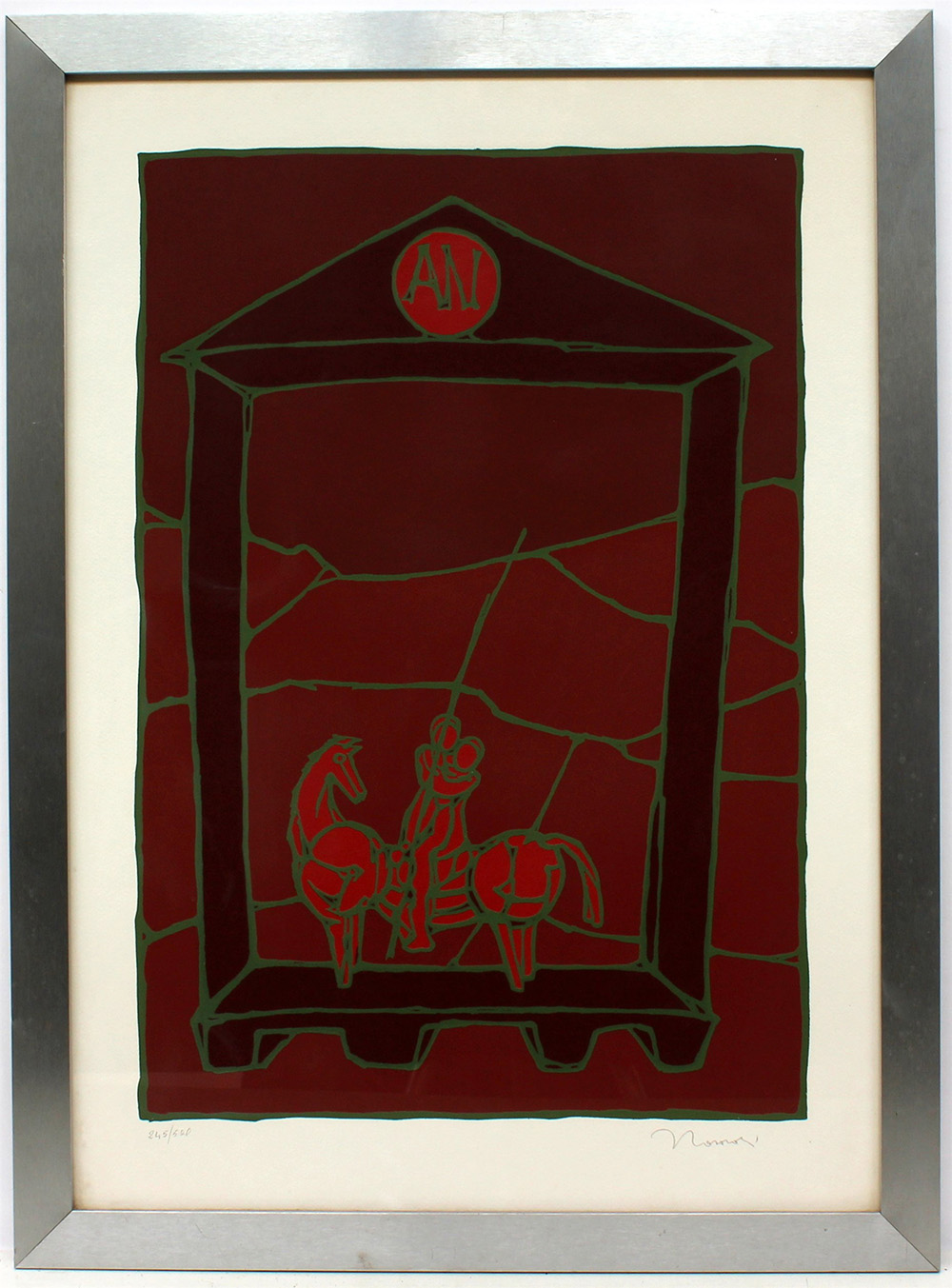 Firma indecifrata "Senza titolo" serigrafia (foglio cm 69x49) numerata 245/500 e firmata in basso a matita. In cornice