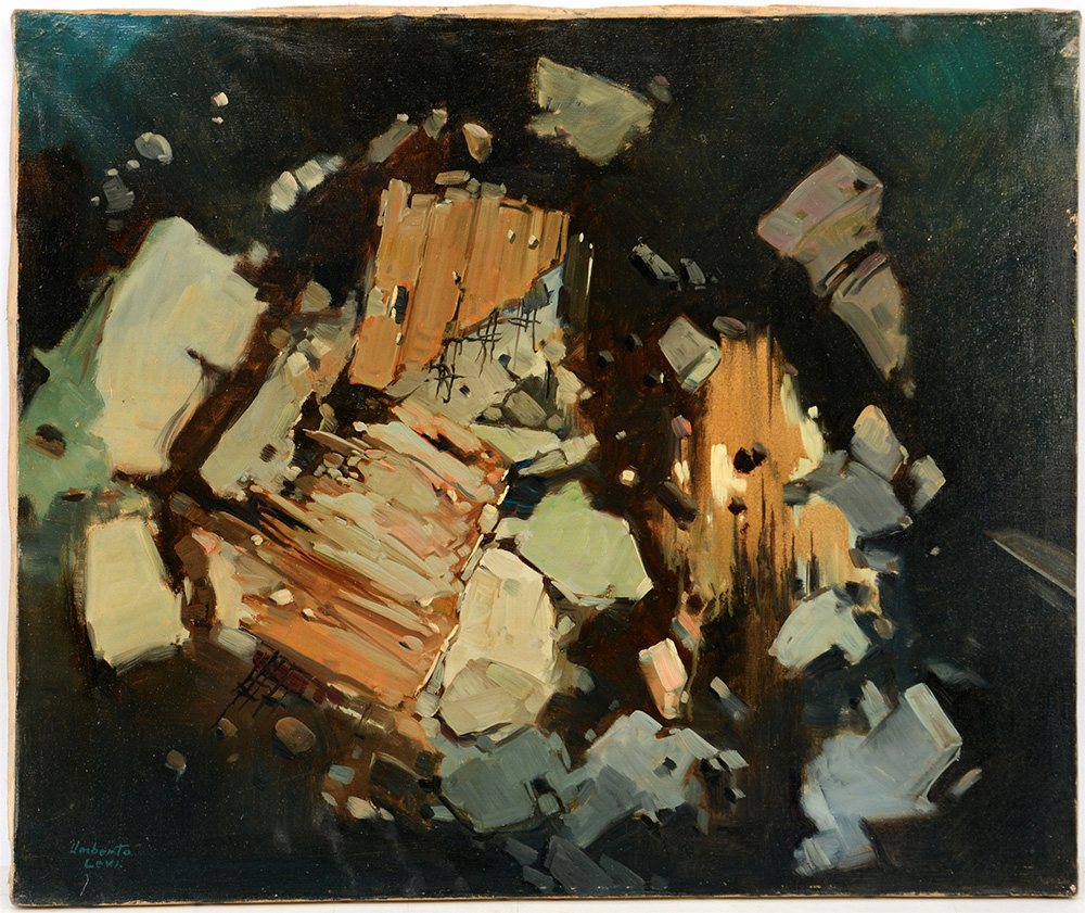 "Senza titolo" olio su tela (cm 50x60) firmato in basso a sinistra e iscritto al retro (difetti)