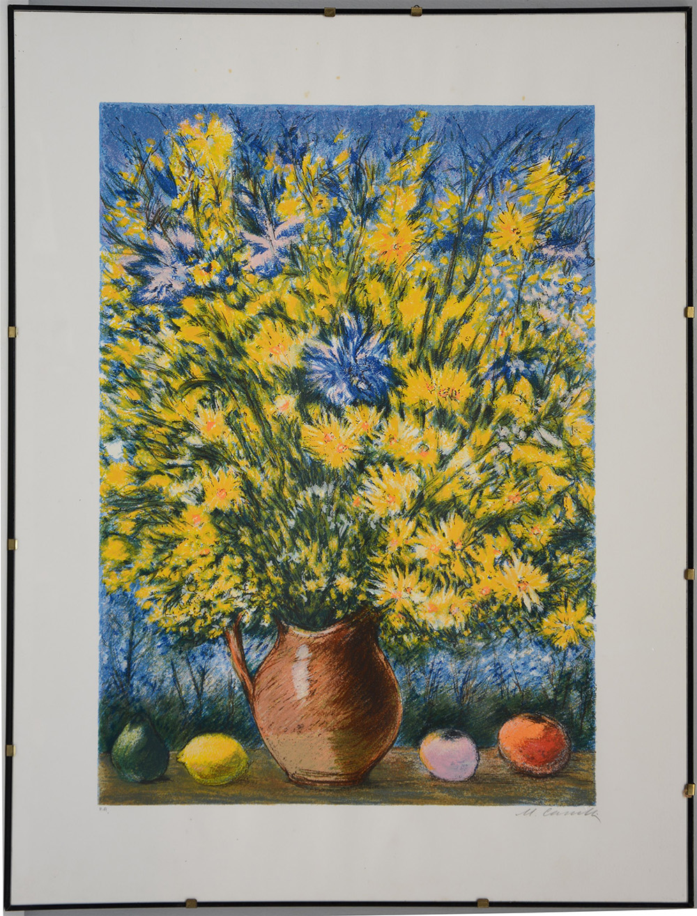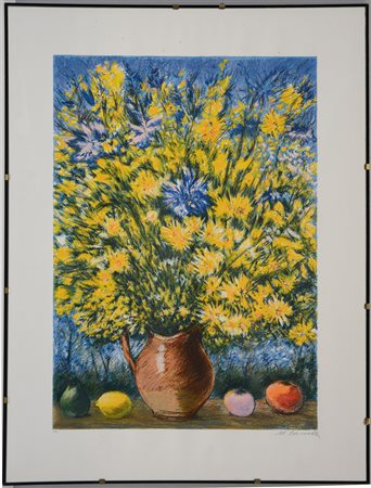 "Vaso di fiori e frutta" litografia prova d'artista (cm 80x60) firmata in basso a destra, in cornice