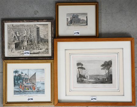 Lotto di quattro incisioni di soggetto, epoche e misure diverse