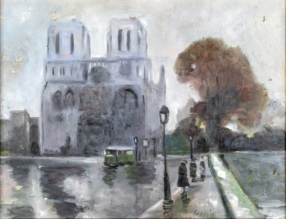 Luigi Surdi NOTRE DAME DE PARIS Olio su cartone, cm 31x40. Firmato in basso a destra "Surdi".