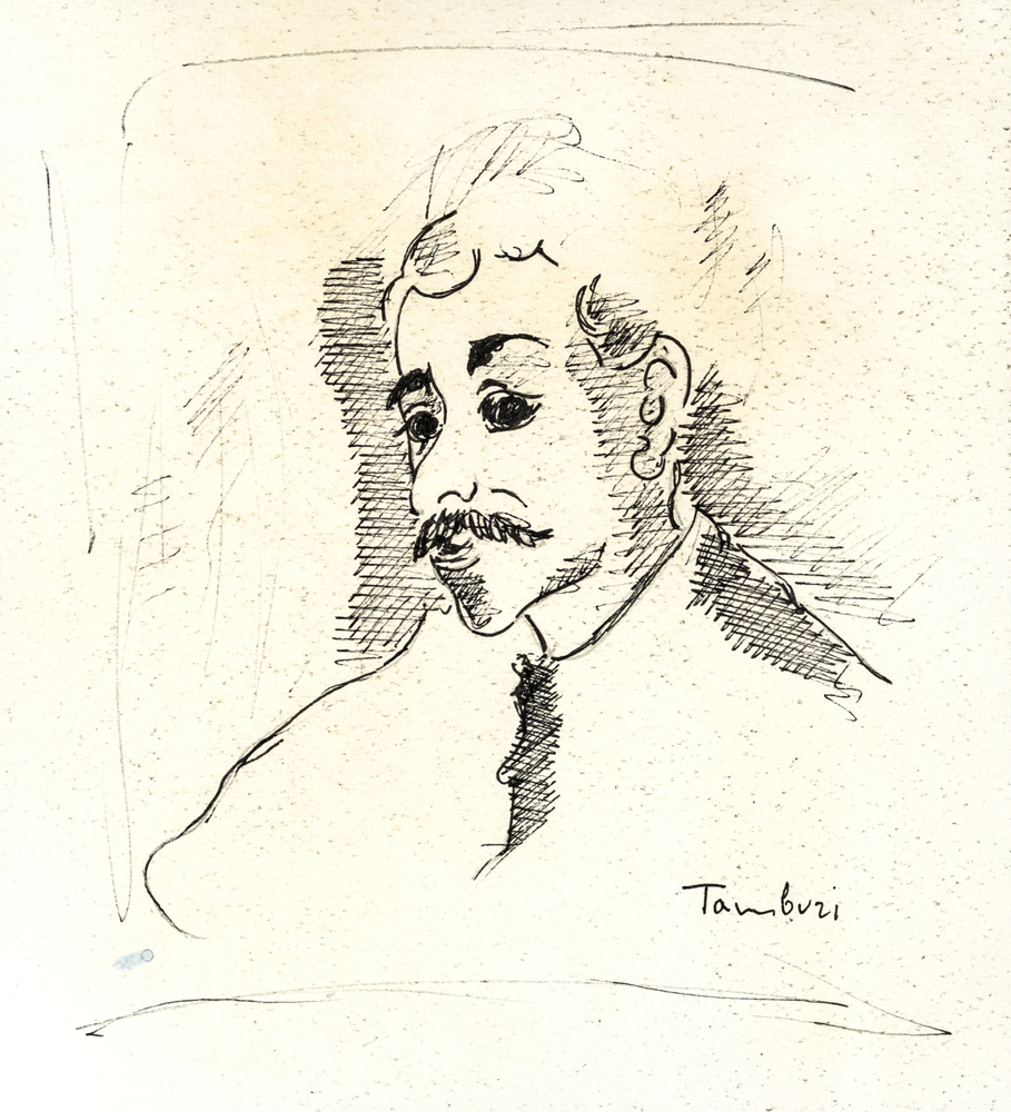 Lot 37 | Orfeo Tamburi AUTORITRATTO China su carta, cm 23x21. Firma "Tamburi" in basso...
