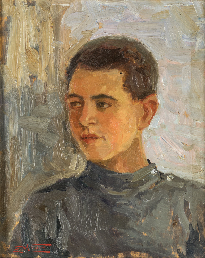 Ettore Morteo RITRATTO DI GIOVANE Olio su tavoletta, cm. 36 x 29 firmato in basso