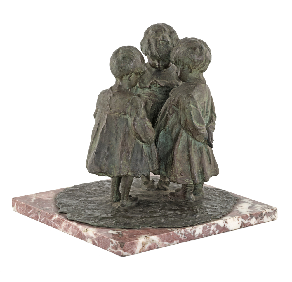 Giovanni Prini IL SEGRETO DEI BIMBI Scultura in bronzo, 29 cm di altezza per 31x31 di base. Firma G. Prini sulla base. Opera in attesa di archiviazione.