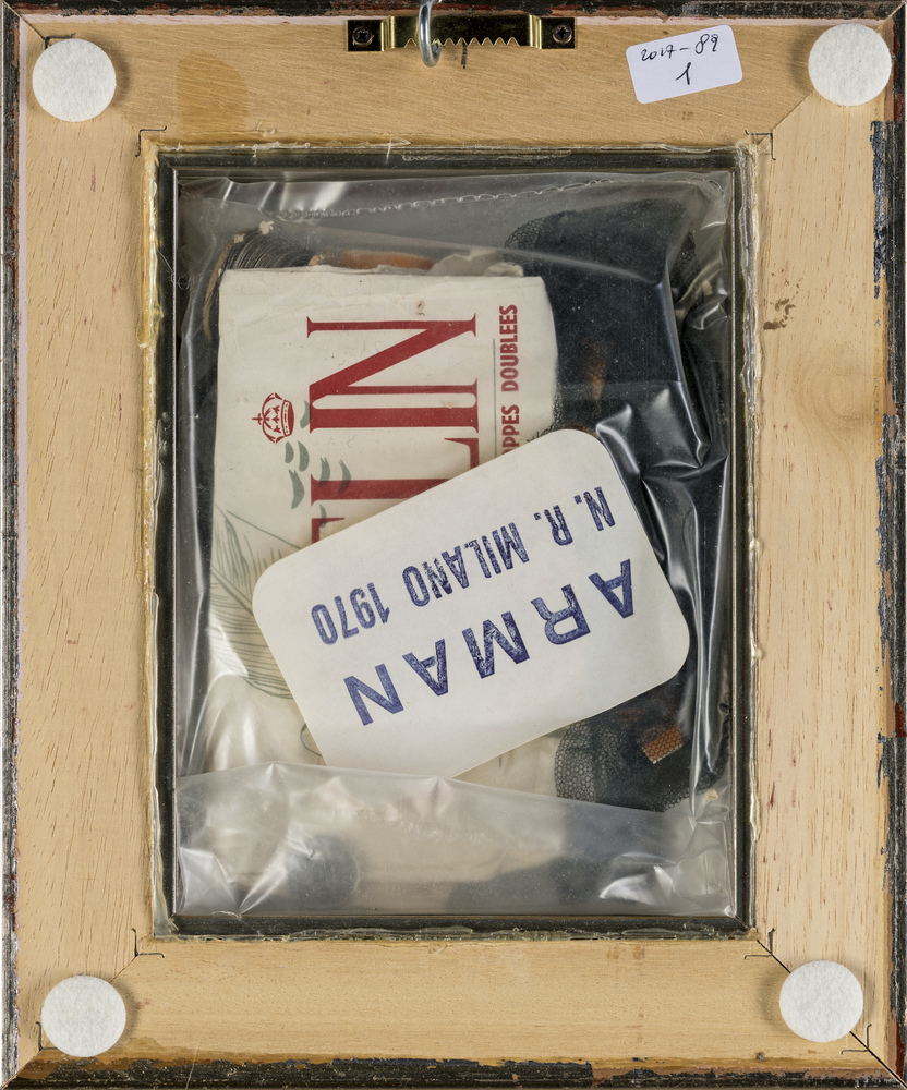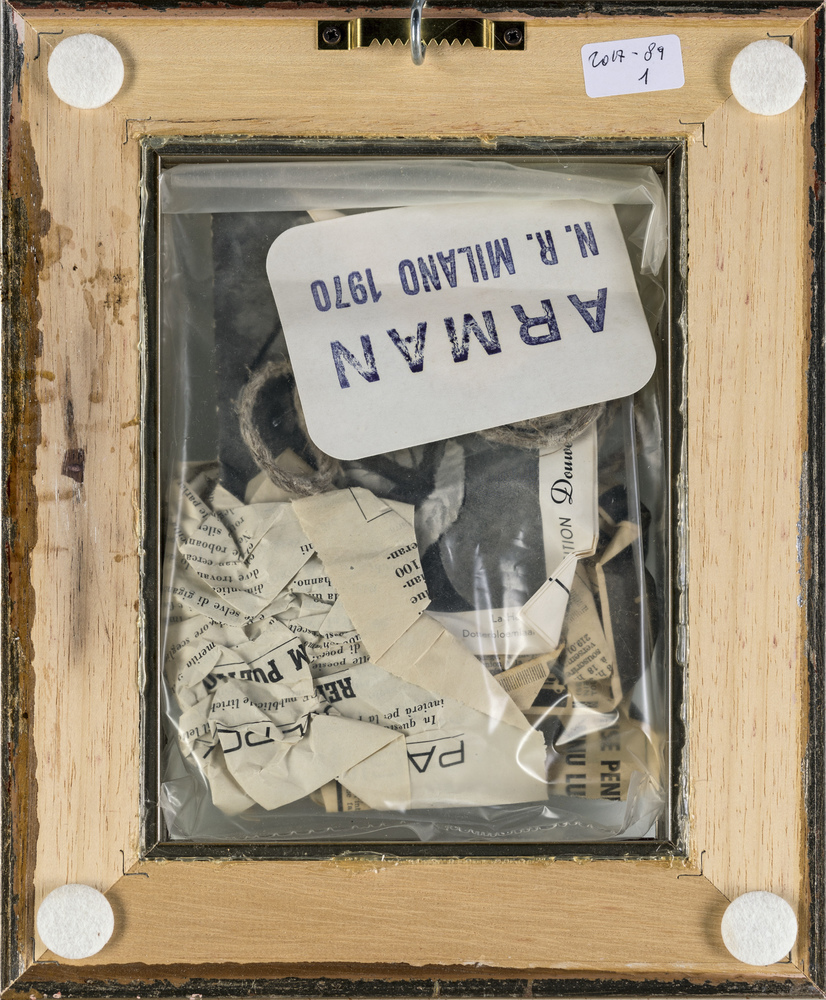 Pierre Fernandez Arman POUBELLES Sacchetto di plastica contenente vari oggetti, ognuna 19,5x14,5x3,9 cm. Il numero di archivio rilasciato dalla Fondazione Arman di New York è APA# 8400.70.030. Questo è valido per entrambe le opere.