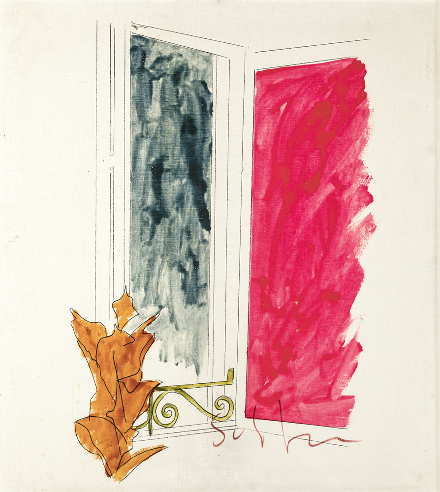 Mario Schifano LA FENETRE ROUGE Smalto su tela, cm 100x90. FIrma sul fronte...