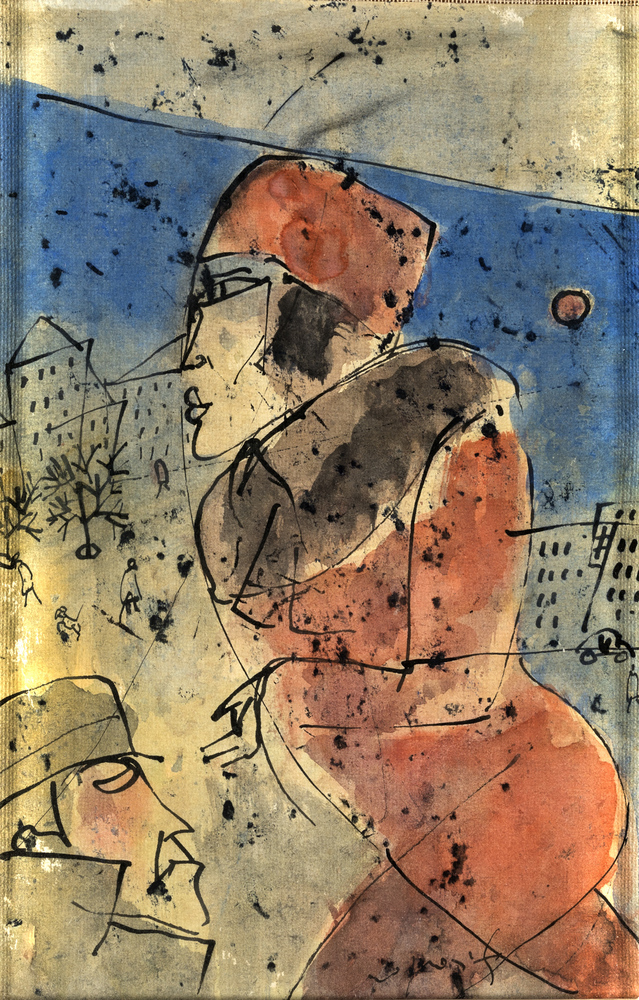 Franco Rognoni FIGURE NELLA CITTÀ Tecnica mista su carta incollata su tela,...