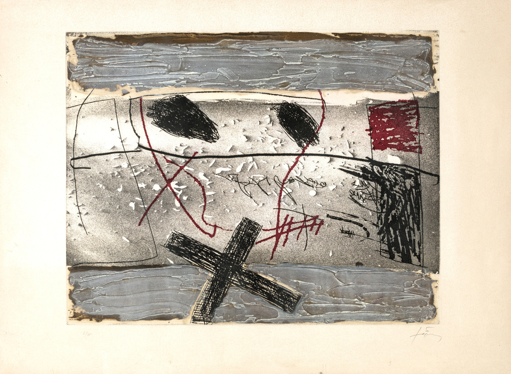 Antoni Tapies DETRITUS Acquaforte a colori, cm 70x96, tiratura 75, es 6/75, Editrice Maeght (Parigi). Firma in basso a destra