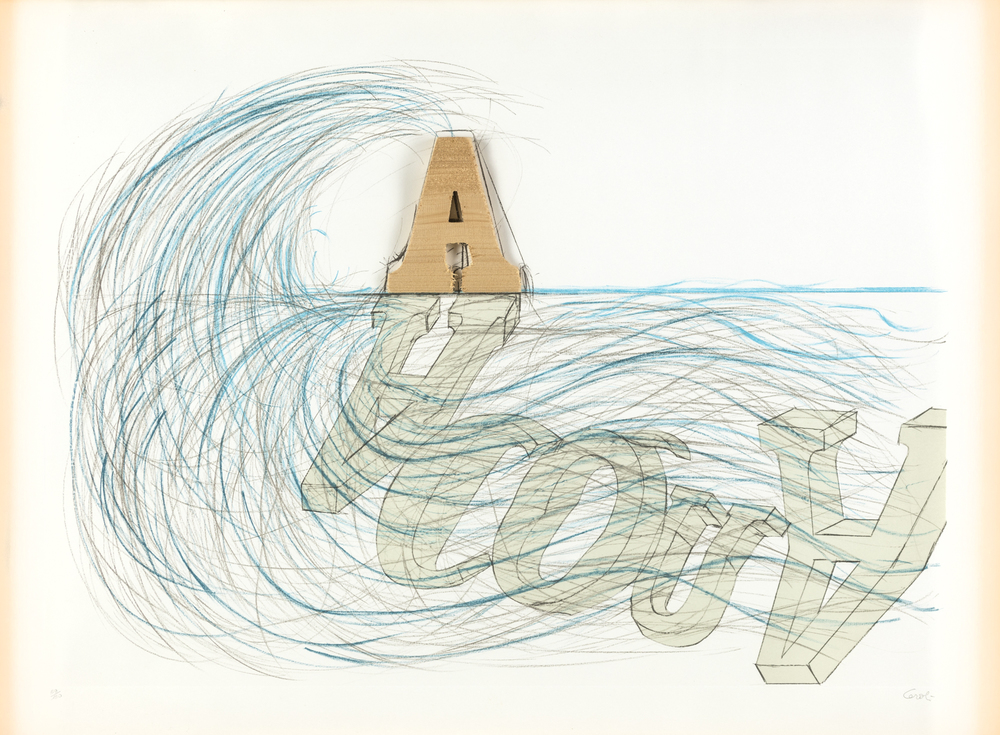 Mario Ceroli ACQUA Scultura multiplo (litografia e legno), cm 59x79. Firma e...