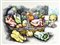 Renato Guttuso CESTA DI ORTAGGI Litografia, cm.50x70. Firma e numerazione sul fronte "48/99 Guttuso". Al retro etichetta della galleria La Vetrata.