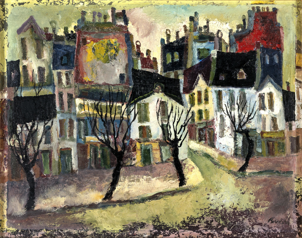 Renato Bussi MONTPARNASSE Olio su tela, cm 40x50. Firmato in basso a destra "Bussi". Al retro firma, titolo e data Paris 1959.