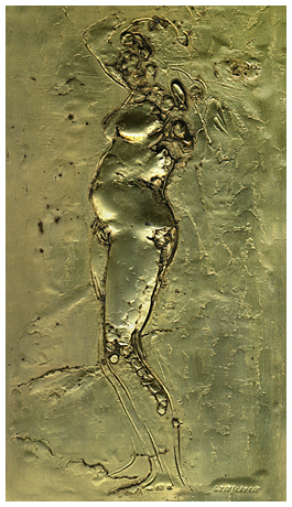PIETRO ANNIGONI Milano 1910 – Firenze 1988 Senza titolo Bassorilievo di argento dorato applicato su tavola 30 x 17,5 es.LXIX/LDXLIX. Firma in a. a d., punzone “925” e “R” in b. al c. B.A.: 50