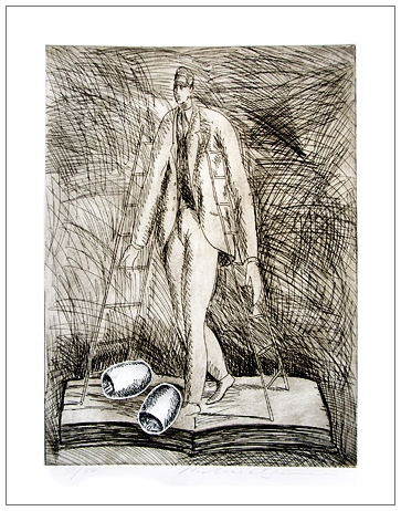 ROBERTO BARNI Pistoia 1939 Senza titolo Acquaforte e acquatinta a 2 colori es.38/50. Firma in b. a d., timbro a secco “E ne l’incendio d’una fredda stampa” in b. a s. (75,5 x 56 foglio – 60 x 43,5 inc.) B.A.: 100