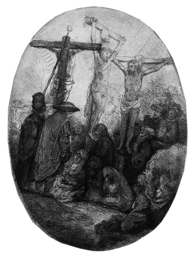 Rembrandt Harmenzoon van Rijn CRISTO CROCIFISSO FRA I DUE LADRONI (LASTRA...