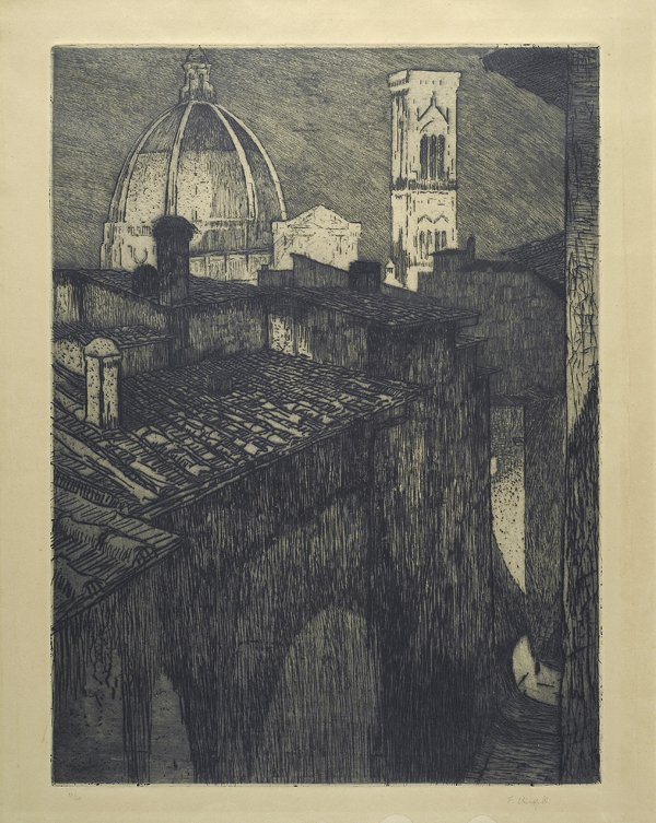 Francesco Chiappelli (Pistoia, 1890 - 1947) Turris eburnea Acquaforte acquatinta, mm. 680x790; es. 10/40 Firma in basso a destra. Tiratura in basso a sinistra. € 150/300
