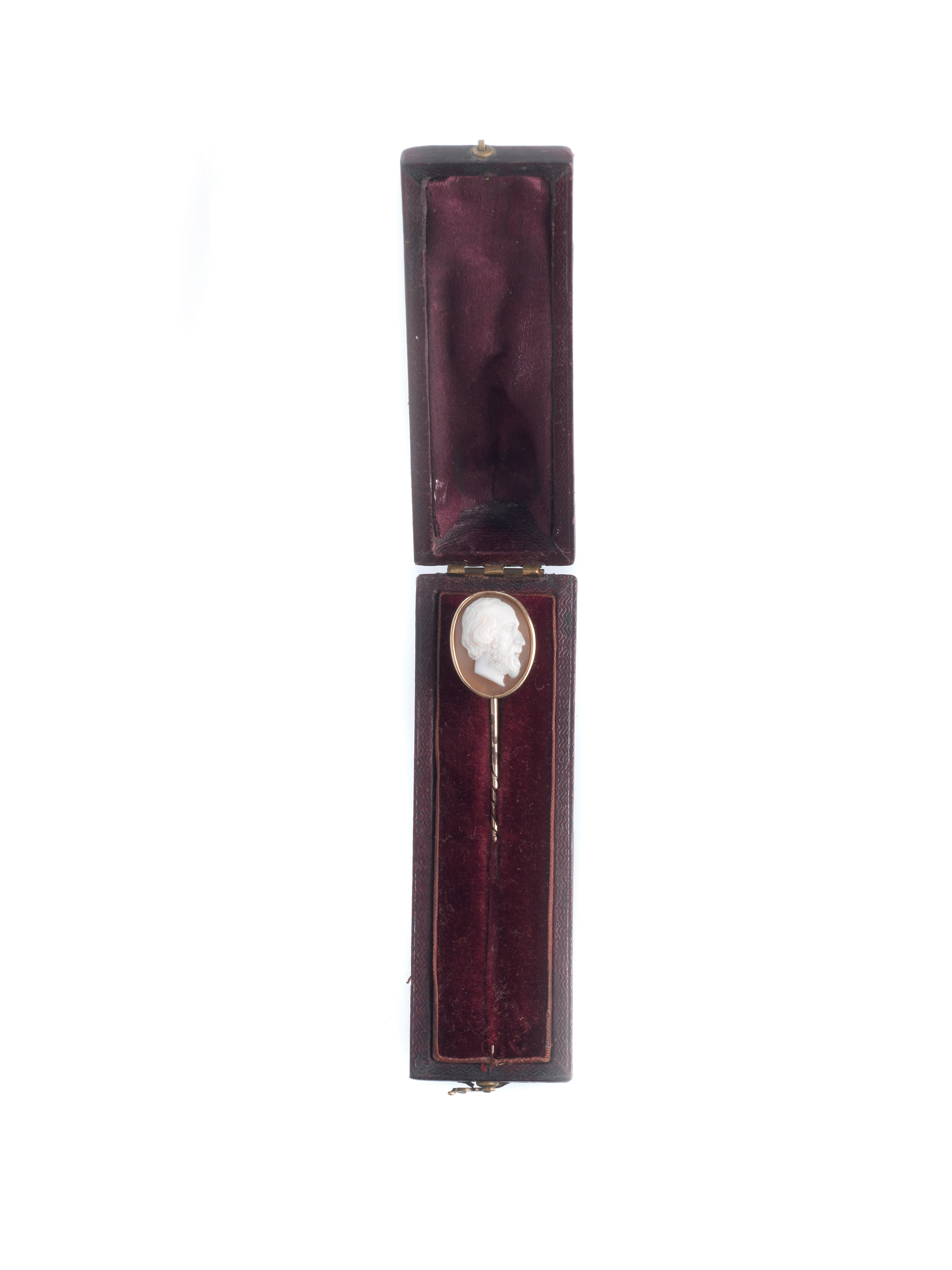 SPILLONE CON CAMMEO un cammeo in conchiglia raffigurante testa di gentiluomo...
