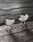 COPPIA DI CLIPS IN ORO BIANCO E DIAMANTI montatura bombata in oro bianco 14 kt disegnata come un volatile e decorata in diamanti con zampe placcate oro giallo, dim. cm 2x2 TWO BIRD PINS IN DIAMONDS AND 14K WHITE GOLD