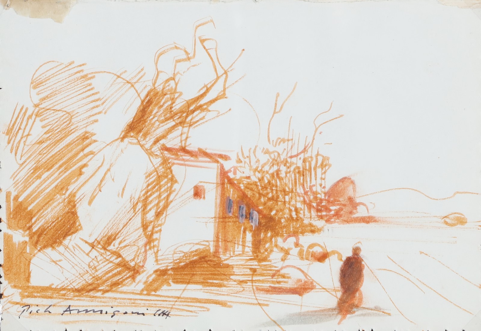 ANNIGONI PIETRO (1910 - 1988) Senza titolo. Sanguigna. Cm 13,00 x 18,00. Firma e anno in basso a sinistra. Autentica dell'artista su fotografia. Cornice presente