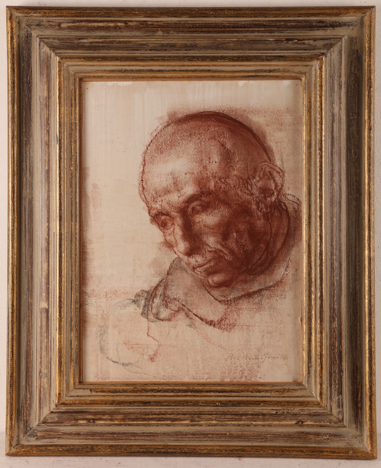 ANNIGONI PIETRO (1910 - 1988) Volto d'uomo. Sanguigna su carta . Cm 28,00 x 38,00. Firma in basso a destra. Opera archiviata presso l'Archivio fotografico ed expertise dell'opera di Pietro Annigoni - Gilberto Grilli, Fano come da documentazione fotografica allegata all'opera riportante il relativo numero d'inventario. Cornice presente