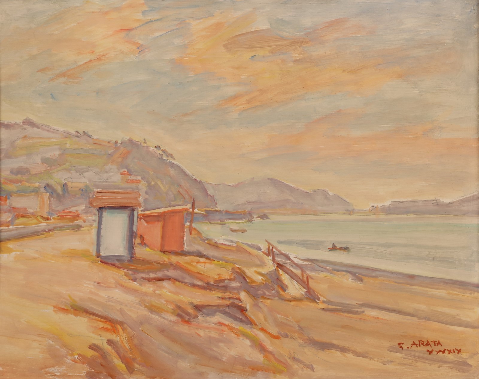 ARATA FRANCESCO (1890 - 1956) Senza titolo. 1949. Tempera su cartone. Cm 47,00 x 37,00. Firma e anno in basso a destra. Cornice presente