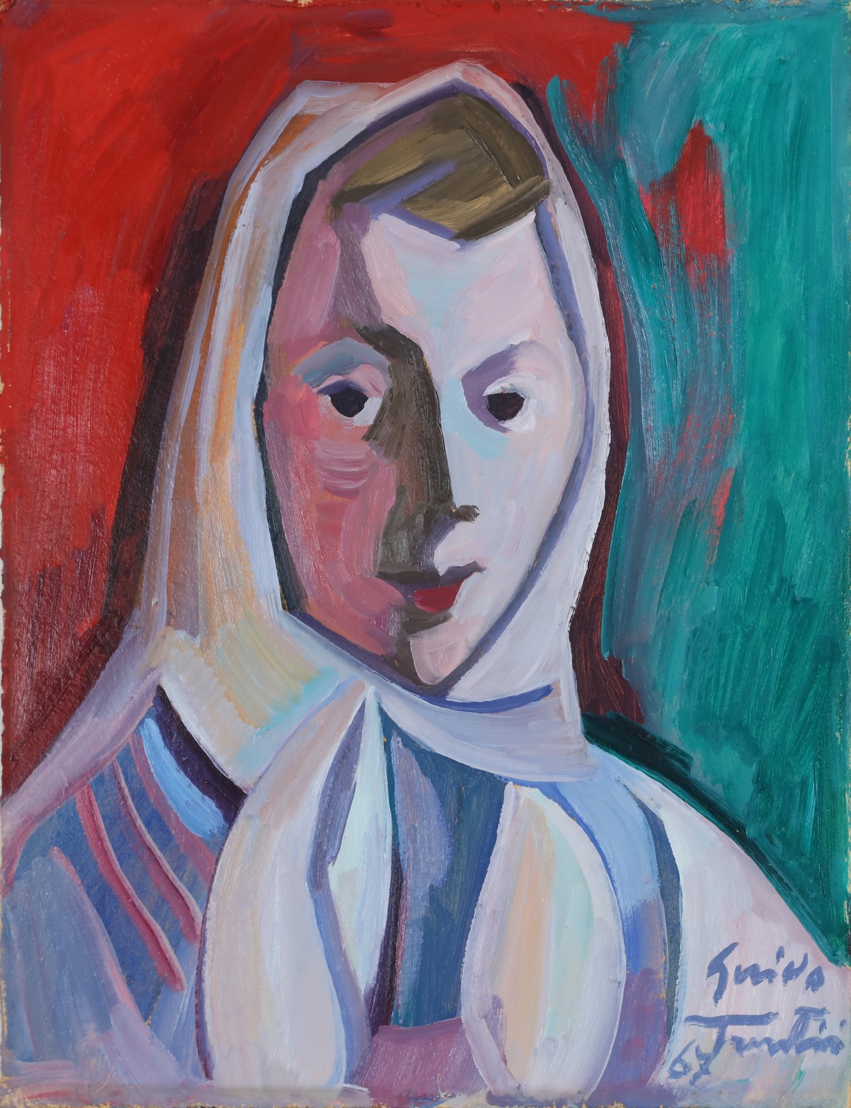 TRENTINI GUIDO (1889 - 1975) Senza titolo. 1967. Olio su cartone pressato. Cm 35,50 x 45,50. Firma e anno in basso a destra. Cornice presente
