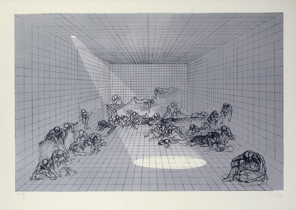Fabrizio Clerici (Milano, 1913 - Roma, 1993) Interno con figure Litografia,...