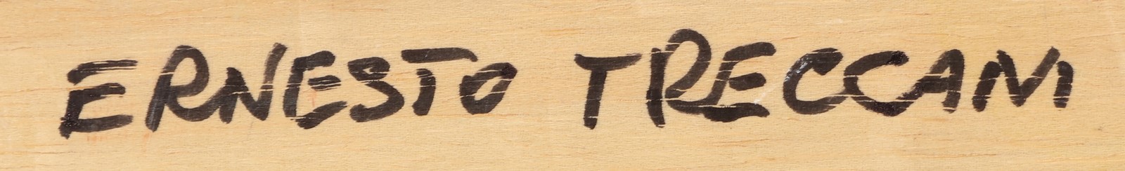 TRECCANI ERNESTO (1920 - 2009) Senza titolo. Olio su tela . Cm 30,00 x 60,00. Firma al retro. Autentica dell'artista su fotografia.