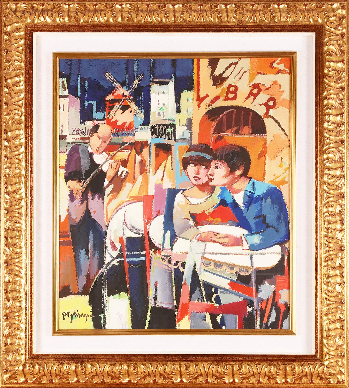 BISAGNI GETTY (n. 1931) Au bistrot du Moulin Rouge. 1997. Olio su tela . Cm...