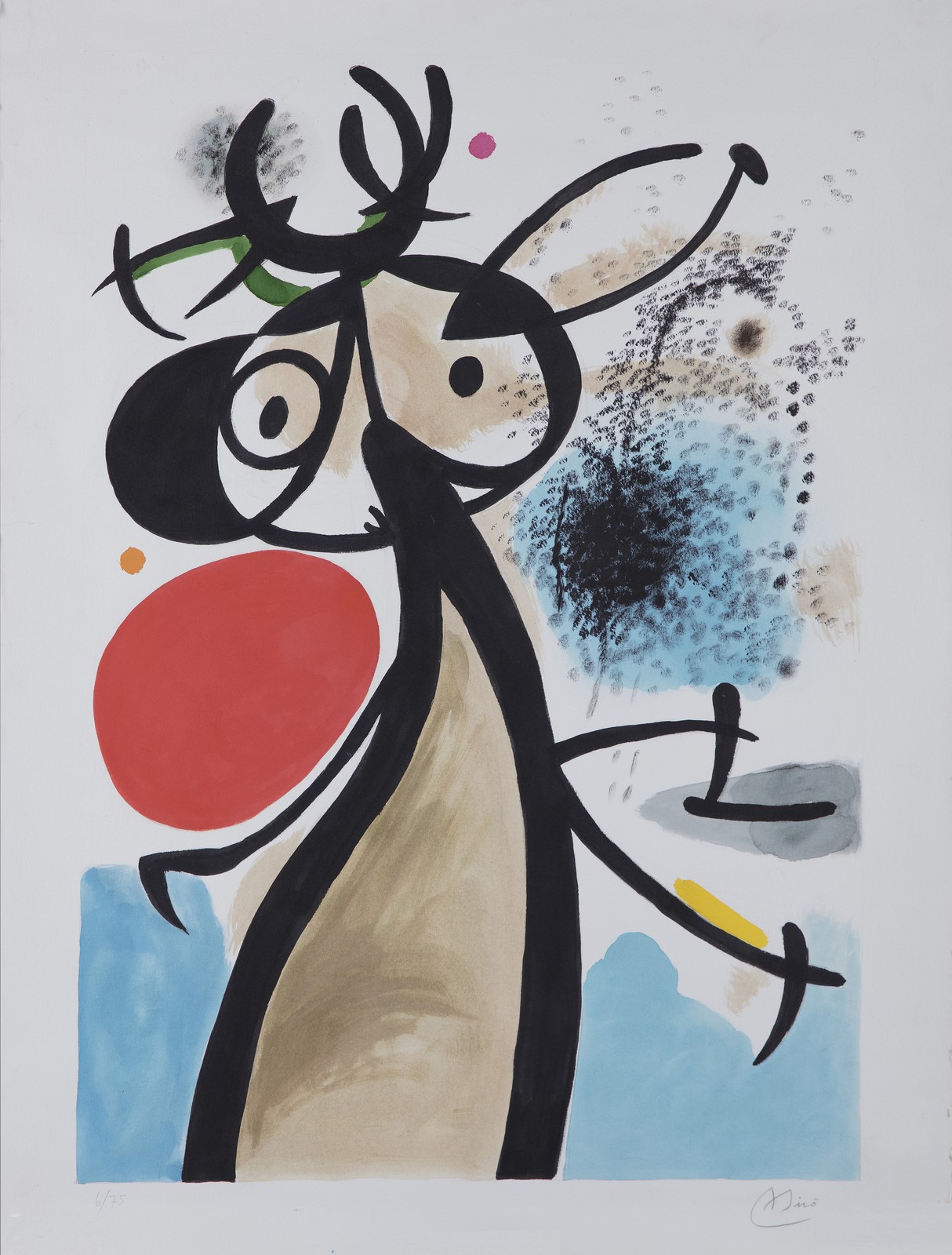 MIRO' JOAN (1893 - 1983) Senza titolo. Serigrafia. Cm 56,00 x 75,00. 6/75. Tiratura e firma a matita in basso a sinistra. Filigrana Arches France in alto a sinistra.
